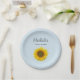 Classe de placa de papel de festa de formatura 2025, com girassol amarelo sobre fundo azul claro. A tipografia negra pode ser personalizada com seu próprio texto. Excelente para comemorar com seu formando favorito.