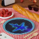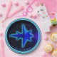 Uma imagem fractal 3D simples, de tom azul, parecida com uma espaçonave estilizada sobreposta a um fundo estrelado. Os anéis concentrados (ondas gravitacionais?) emanam da espaçonave para o aparente vazio do espaço. Uma aura azul clara envolve a espaçonave, talvez o resultado seja mais rápido que o viagem da luz. Adicione seu próprio texto.