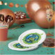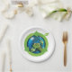 A green frog over a globe of the earth as an environmental design. This design looks really effective on these Paper Plates