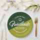 Be proud, rejoice and showcase this milestone of your favorite grad! Celebrate with these simple, modern yet retro, minimal custom paper plates. Bold, graphic, white handwritten script calligraphy, sans serif typography and a white hand drawn grad cap icon overlay both an olive and hunter green background. Personalize the custom text with your grad’s name and address. Personalize the custom text with your graduate’s name, class year and school or special message. Available in 2 sizes: 7” or 9”, round or square. Matching invites, thank you cards, hand fans, banners, yard signs and other graduation goodies are also available in this retro and trendy collection. Guaranteed to add stylish fun to their special party!