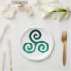 Símbolo verde Triskele. O símbolo Triskele ou Triskelion é constituído por três espirais interpressas ou três braços como se estivesse a sair do seu centro. Esse símbolo celta de movimento ou ação representa os três mundos: celeste, físico e espiritual.