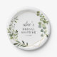 Prato de Papel Greenery Eucalipto para Chá de Bebê