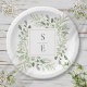 Prato De Papel Greenery Foliage Monogramas Iniciais Casamento