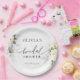 Prato de Papel Greenery Rosas Brancas Chá de Noiva. Este convite de Chá de Noiva elegante e sofisticado apresenta lindas Rosas Brancas Greenery pintadas à mão com aquarela. Encontre itens correspondentes na Coleção de Rosas Brancas Greenery com Aquarela.
