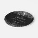 Um fundo na moda preto com elegante brilho fino prateado, brilhos. O texto: O nome é escrito em branco com um moderno script de estilo escrito à mão. Personalize e adicione um nome, idade e data.