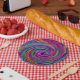 Prato De Papel Groovy Abstrato Retro Magenta Dark Rainbow Swirl