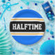 Este esportivo, design atlético, apresenta dentro de texto HALFTIME ousado, uma faixa preta de centro largo com pinstripes brancas e amarelas contra listras externas azuis brilhantes. O texto pode ser personalizado.
