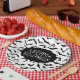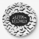 This paper plate is shown with a Happy Halloween bats print.