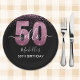 Prato De Papel Hello 50! -50th Women's Birthday with Pink glitter