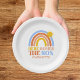 Brighten up your baby shower with our Here Comes The Son Paper Plates! Featuring a colorful sun and rainbow design in bold hues of blue, orange, yellow, and terracotta, these sturdy, disposable plates add a cheerful touch to your table. Perfect for serving snacks or cake, they combine style and convenience for a sunny, stress-free celebration!