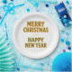 Fun festive paper plates with "Merry Christmas and a Happy New Year "on it. Lettering in a cheery red and green geometric pattern outlined in gold. Great for holiday parties when getting together with family, friends or co-workers.