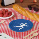 Prato De Papel Homem Runners Silhouette em Fundo Azul