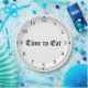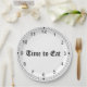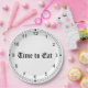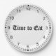 Sua placa é uma face do relógio com texto, "HORA DE COMER."