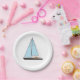 Veleja para o pôr do sol. Uma bela ilustração de um iate de navegação azul claro. Perfeito para quem ama barcos, ilustrações bonitas, iates e barcos à vela. Presente de aniversário ideal, decoração infantil, arte de quarto infantil, decoração doméstica, presente de Natal ou presente para qualquer outra ocasião especial.