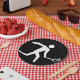 Um ícone do jogador de squash em branco sobre um fundo preto. Este design parece realmente eficaz nestas placas de papel