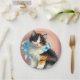 Placas de papel com um gatinho calico fofo. O gatinho veste uma fita azul enquanto se senta adoravelmente em uma mesa. Um presente perfeito para amantes de gatos e entusiastas de arte vitorianos!