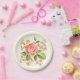 Esta placa de papel é mostrada numa cor de marfim leve com um adorável impressão floral. Personalize este item ou comprar como está. Impressão de ações freepik.com