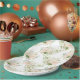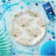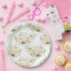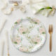 Esta placa de papel é mostrada em uma adorável impressão de rosas brancas e lírios. Personalize este item ou comprar como está. Impressão de ações freepik.com