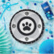 Uma representação moderna de uma pata rodeada por padrões ornamentais dentro de um quadro circular. Adequado para temas que envolvam animais de companhia, natureza, cuidados com animais e elementos gráficos de design.