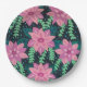 Prato De Papel Impressão Floral Abstrato, rosa e verde