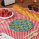 Prato De Papel Intricate floral and geometric pattern with orange