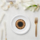 Pratos de papel globo ocular com uma íris marrom. Pratos divertidos para Halloween ou festas temáticas de monstros.