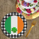 Papelão: pratos do partido Rustic Ireland com bandeira irlandesa, Shamrock cercado por padrão de xadrez de búfalos preto e branco - amor ao meu país, decoração festiva, Ruas. Dia de Patricks, patriotas nacionais/fãs desportivos