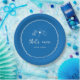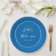 Este lindo design de chá de panela inspirado na Itália apresenta letras cursivas em estilo manuscrito acentuadas com uma borda de fita ondulada em branco sobre um fundo azul mediterrâneo. Ilustrações desenhadas à mão de macarrão gravata borboleta, vinho e um limão siciliano completam o design para um visual de verão da Costa Amalfitana. Estes elegantes pratos de papel para chá de panela mediterrâneo apresentam a frase "that's amore" em letras manuscritas com os nomes do casal abaixo.