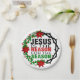 Jesus é a razão da temporada, esta design apresenta uma coroa de espinhos e uma coroa de natal com texto dizendo "Jesus é a razão da estação".