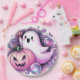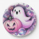 Um fantasma brincalhão e alegre admirando uma pequena abóbora!