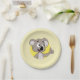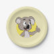 Paper Plate with illustration of head of a cute little koala bear in yellow circle on yellow background, cute wild animal design for kids by Maxi Harmony; great decoration for your child's birthday party