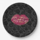 Prato De Papel Lábios vermelhos Beijo Preto Floral