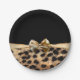 Prato De Papel Laço Preto e Dourado Estampa de Leopardo e Guepard