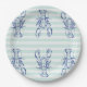 Um verão, design náutico de lagostas azuis únicas em fundo listrado.