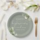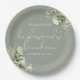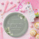 Este prato de papel para lanche das damas de honra com folhas de greenery botânico elegante pode ser personalizado com suas informações em tipografia chic. Criado por Thisisnotme©