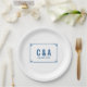 Papéis de Casamento Deco Chic Simples e minimalista são colocados em placas com uma moderna fronteira decorativa de deco de arte azul escura. Estes pratos clássicos e elegantes são fáceis de personalizar com seus detalhes de casamento. Localize mais opções de personalização clicando em Personalizar.