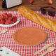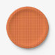 Prato de papel laranja com padrão xadrez