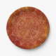 Prato De Papel Laranja Mandala e Dourado Glam Moderno Chic
