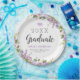 Barato de placas de papel de festa de formatura impressas personalizadas. Este bonito design feminino tem uma borda floral de cor d'água com flores roxas pastel e verde. Personalize o modelo com os detalhes do seu formando. Use as ferramentas de design para escolher qualquer cor de fundo e fontes que você quiser ou carregar suas próprias fotos para personalizar ainda mais o design.