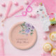Personalize this Lilac Peony Baby Shower Paper Plate – a beautifully crafted design perfect for a chic floral baby shower. Featuring delicate watercolor lavender peony flowers accented by soft greenery, this elegant design is set against a soft peach background, creating a sophisticated, lilac-toned theme that’s both fresh and inviting. Add a touch of elegance to your celebration with this stylish, floral-inspired choice, ideal for the mom-to-be who loves a refined, nature-inspired aesthetic. Perfect for bringing charm to your Lavender Baby Shower Party, Lunch or Picnic.