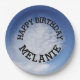 Lindas nuvens no céu azul e o texto: Feliz aniversário, personalizável com outro nome.