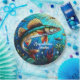 Este design moderno divertido tem um pique colorido de walleye nadando em um belo lago azul num dia ensolarado.