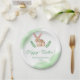 Prato De Papel Lindo Coelho de Aquarela Marrom com Páscoa de Verd