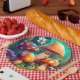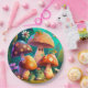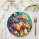 Prato De Papel Lindos elfos brincam sob pílula redonda de cogumel