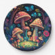 Prato De Papel Lindos elfos brincam sob pílula redonda de cogumel