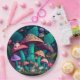 Prato De Papel Lindos elfos brincam sob pílula redonda de cogumel