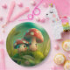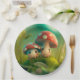 Prato De Papel Lindos elfos brincam sob pílula redonda de cogumel