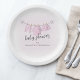 Este design apresenta um chá de fraldas, simples placa de papel, com uma aquarela, design cor-de-rosa, perfeita para que a mãe seja, para ela, uma bela design de menina com uma linha de tecido branco, com um sutil padrão floral.