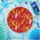 Saxofones e notas musicais compostas por linhas horizontais contra linhas verticais em tons de azul, cinza e preto é um design único para músicos sax, professores de música e estudantes de jazz, concertos e bandas marchantes.