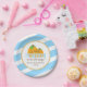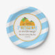 Prato De Papel Listras azuis Dourados pouco chá de fraldas da